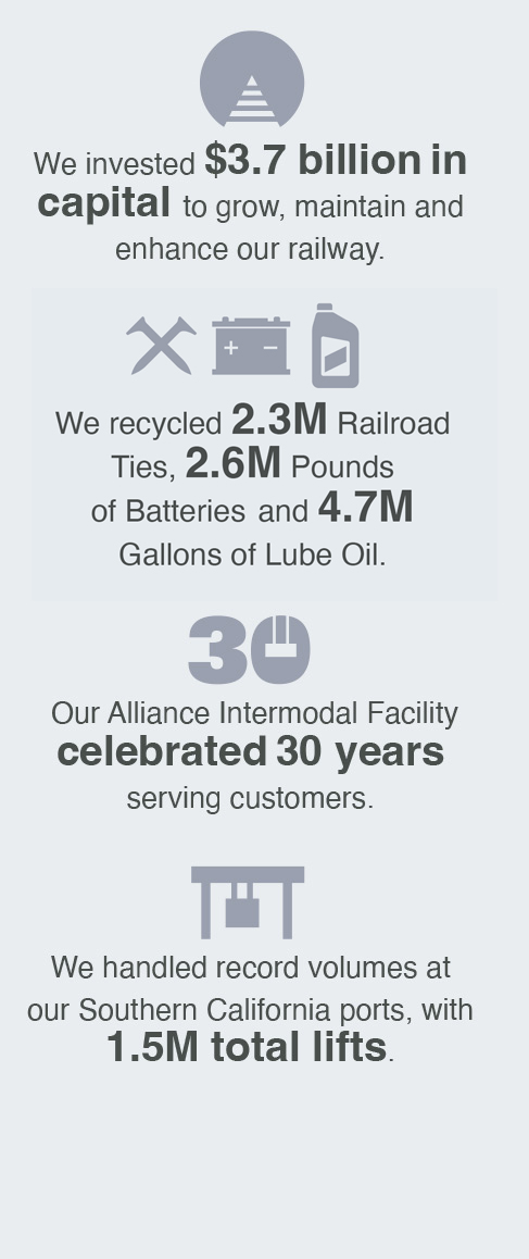 Since BNSF was formed in 1995, we have invested nearly $95 billion to maintain and expand our network to be able to meet the growing needs of our customers. We are committed to having the capacity, the equipment and the people that allow us to grow with our customers and say yes to new business opportunities.