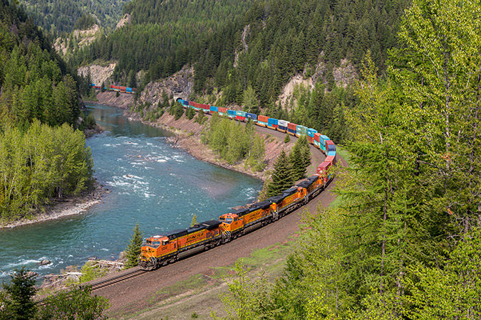 When it comes to the environment, one BNSF train can move one ton of freight nearly 500 miles on just one gallon of diesel fuel. And one of our freight trains is an excellent choice for long-haul moves because it will remove hundreds of trucks from the highway. What’s that mean? Less congestion on roads, less time stuck in traffic, fewer engines idling, and less air pollution.