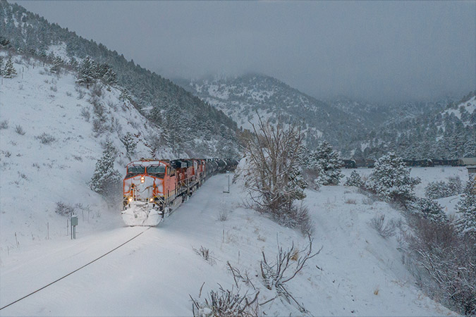 In the midst of the many challenges people have faced in the past several months, it’s good to see that some things never change. BNSF trains keep moving freight, and railfans keep capturing magnificent images of them, even in cold winter weather. We’ve scoured the entries from this year’s Winter Photo Contest to find the 10 most un-brrr-lievable scenes!