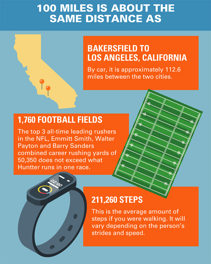 To date, Hufferd has completed six ultra-marathons. In his most recent event, he placed first with an impressive time of 25 hours and 47 minutes. That’s an average pace of about 15:30 per mile over the course of 100 miles.