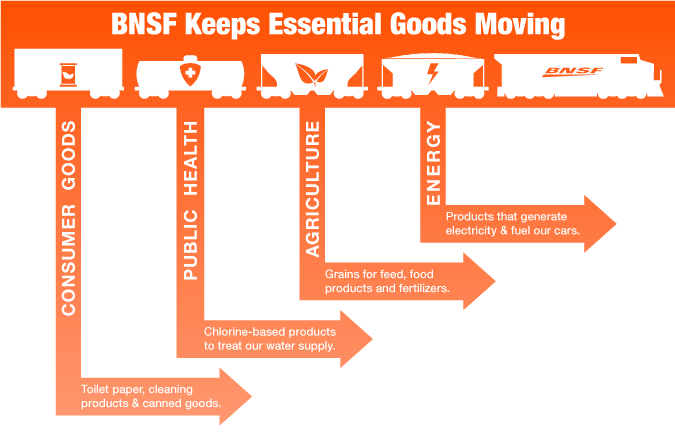 “This is a very serious and somber time,” said BNSF President and CEO Carl Ice. “Some of the very things that are necessary and have to be available to help combat the present situation move on our railroad.”