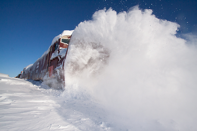 Snowplows are fascinating to watch and a fantastic representation of overcoming the dangers of nature, but Baier warns that snowplows can be dangerous to trespassers who venture near snow-covered track. “Cross country skiers and pedestrians should stay away from the rails. Going across the tracks can seem like a nice shortcut, but snowplows move fast and throw snow and debris around. It can be hard for people to see them until it’s too late.”