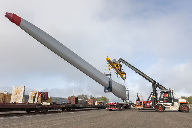 According to Lorinser, the power generation industry is one of the big users of this service. In fact, over the past decade, and especially since the production tax credit was initiated to aid renewable energy producers, there has been a surge in wind tower production. Today, wind tower components – blades, turbines and towers – continue to get bigger and longer. Even so, BNSF can ship the longer blades, extending them over three 89-foot railcars.
