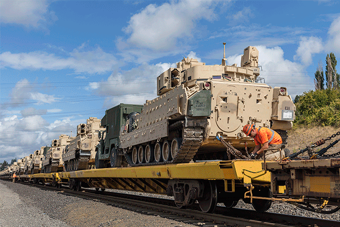 “The military no longer uses rail to move troops, but we do move tanks and other equipment,” said Lorinser. “We typically use state-of-the-art, chain tie-down flatcars that can adjust to carry large vehicles or we can load equipment into 20- to 40-foot containers.”